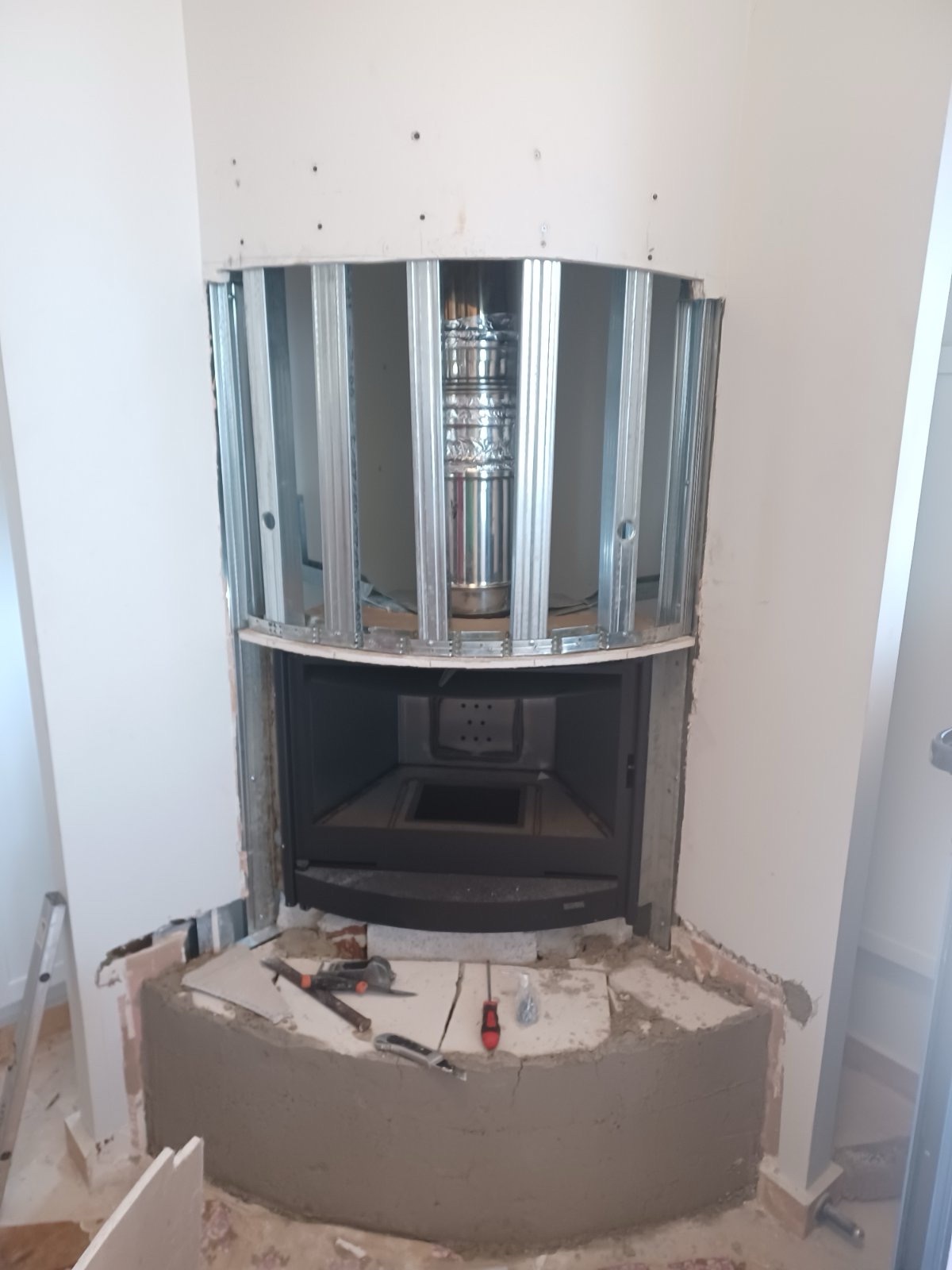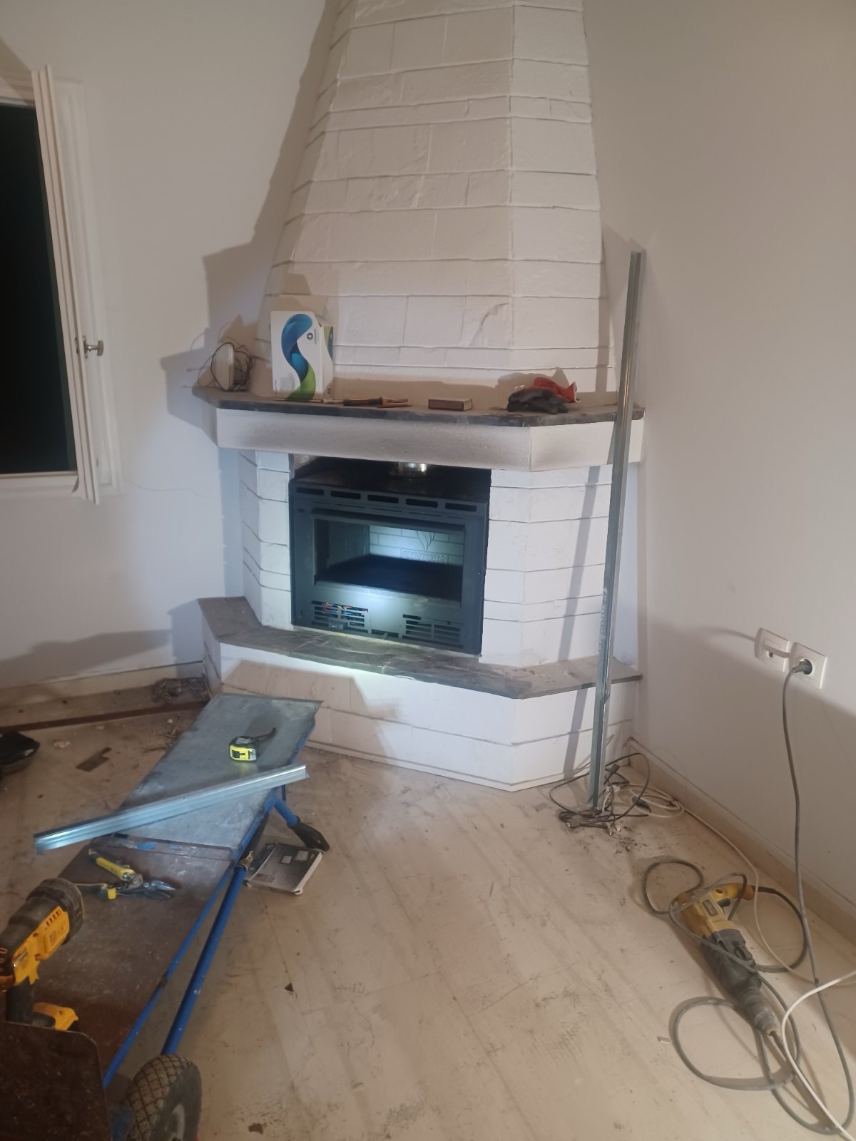 If it is decided by the technician and you that the appropriate solution is to convert the fireplace, then the technician does the measurement and you choose the cassette to be placed inside the hearth. At the next appointment, the process begins, with some clearing in the old fireplace (in the combustion area), in order to create the appropriate space for the cassette fan. However, we do not install it yet, but connect the chimney to the new system and take care of the complete thermal insulation of the back walls.